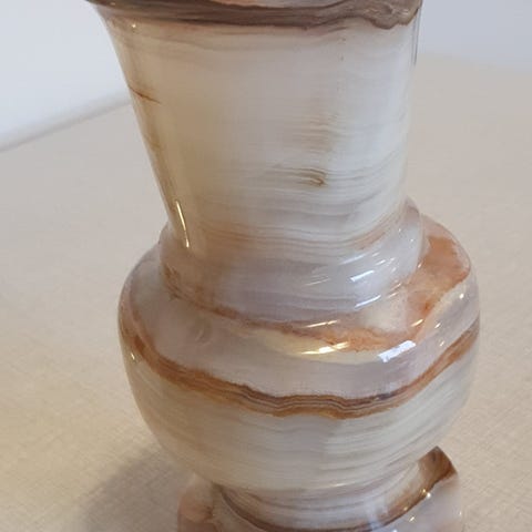 Et vakkert vintage askebeger skål i lysegrønn beige onyx. NB! Har noen hakk i kanten, se bilder. Selges som det er! Størrelse ca 8x8cm og er perfekt til sage, polo santo eller annen røkelse, eller som en fin skål til smykker eller nøkler.