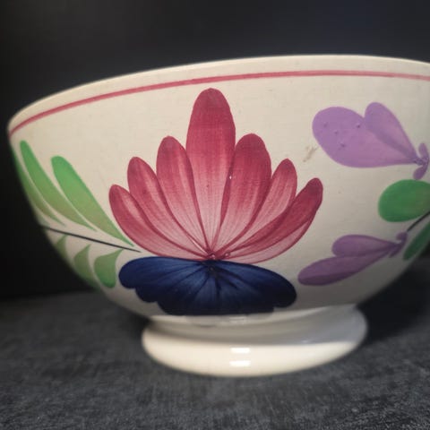 Porselen skål. Lengde = 13 cm. Bredde = 9 cm. Høyde = 7,5 cm.