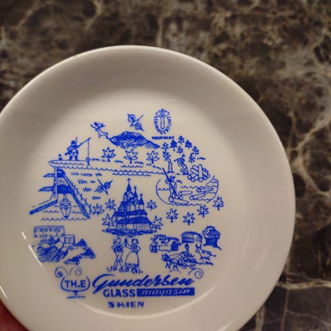 Fin liten platte med reklame for Glasshjørnet Sandefjord.