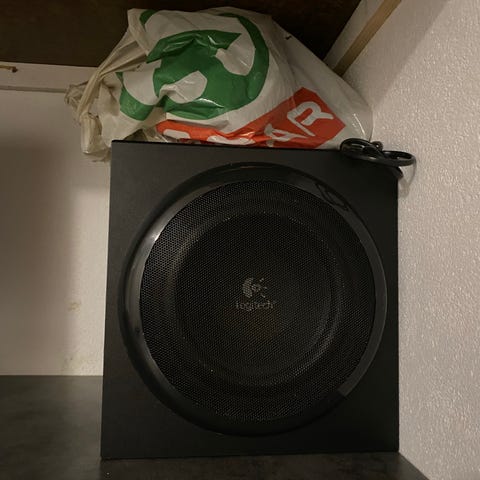 Selger lydanlegg med 2 høytalere og 1 sub. God lyd.