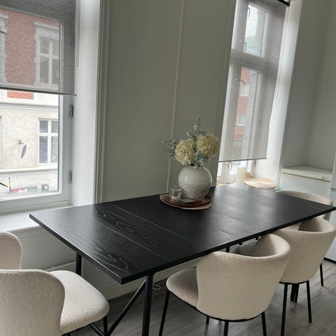 Stoler kan kjøpes ved siden av om ønskelig, 800kr per stol. Har 6 stk. Det er Michelle stol fra Bohus. Også kjøpt i 2022. Nypris: 1299kr