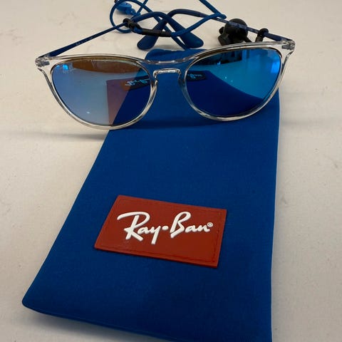 Selger et par Ray-Ban solbriller i barnestørrelse. Klassisk design – perfekt for barn som vil se kule ut og samtidig beskytte øynene i solen. Brillene kommer med originalt, mykt oransje Ray-Ban-etui med snorlukking.