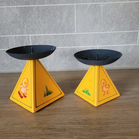 Rydder og derav selges to stk søte gule kyllinger i tynn keramikk. De har prydet påskebordet i mange år men nå er det på tide de drar videre. De fremstår i god stand og hverken piper eller kvitrer. De måler sånn ca 12 cm ganger 8 cm. Pris for begge. Ksn sendes.