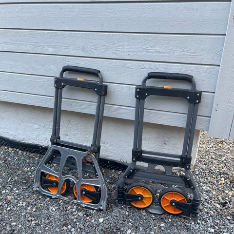 Veldig lett og tippe bakover med last hvis man skal over dørstokk.