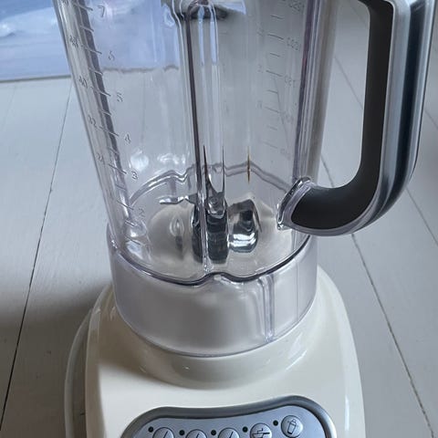 Selger en pent og lite brukt Kitchenaid blender med glassbeholder.