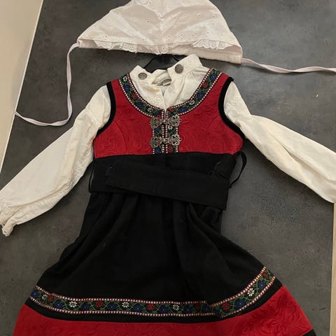 Festdrakt str 86 med skjorte, forkle og strømpebukse