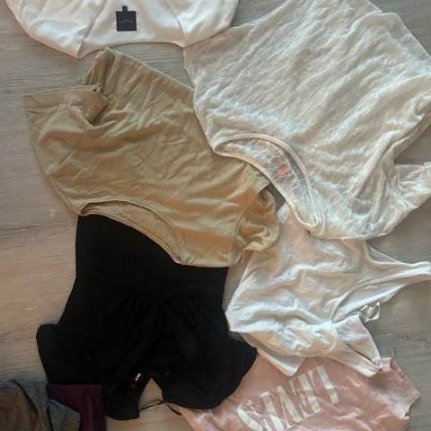 3 langerma gensere, 2 singleter, 1 pumatskjorter, 1 divided genser, 1 divided magetopp, 1 sort tskjorte