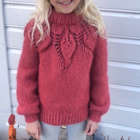Dahlia strikket i peer gynt. Tror målene tilsvarer ca str 8 år.