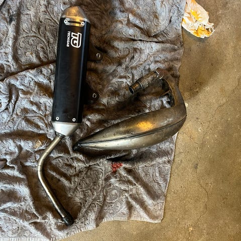 Godt brukt men fungerende Leo Vince effekt anlegg som fikk min ellers originale derbi til å gå å 75. Funker ekstremt bra. Selges for 850 pris kan diskuteres