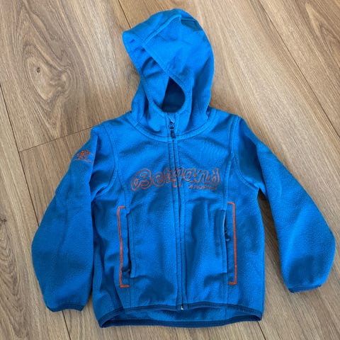 Bergans fleecejakke i blå farge, unisex, størrelse 92. Jakken er laget av mykt fleece-materiale, som gir god varme og komfort. Den er ideell for barn og kan brukes til ulike utendørsaktiviteter i kjøligere vær.