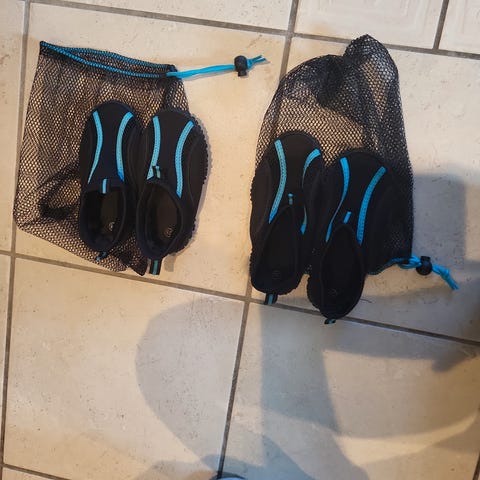 Selling swimming shoes from Aquarapid. Ideal for swimming. Small holes allow the water to go through, so it's easier to swim. Size 29/30.