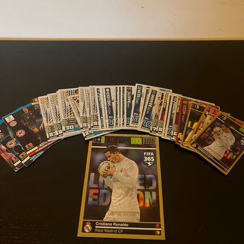 Har regnet ut minste pris av verdien på alt sammen ned på et dokument og MINSTE verdien på det er 65,473kr og da har jeg ikke regnet med de løse kortene som ikke ligger i kollektion bøkene, så det er mye høyere verdi en det også, tipper det er verdi på minst 80 tusen. Sjeldne samlekort, meste parten av dem er kun lagd opp till kun 8000 av.