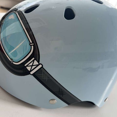 Kul 🦖 hjelm til de minste barna. Pent brukt hjelm, aldri blitt skadet. Vi brukte denne på barn fra 9 mnd til 2,5 år :)