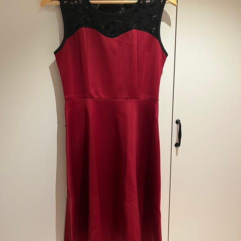 Elegant, pent brukt fløyelskjole fra Wallis. Det står str. 12, og den passer em M. Når ned til ankelen på meg som er 167 cm, men nå er den for liten i bredden for meg. Wrap-kjole, med en strass-spenne i siden (mangler en sten)