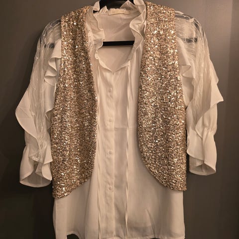 Flott med en tynnere bluse/shirt under. Kjøper betaler frakt.