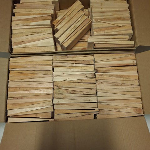 Rester som ble igjen etter snekkerfirma. Den lengste er ca 115 cm. Den korteste er litt over 70 cm. Et par små merker.