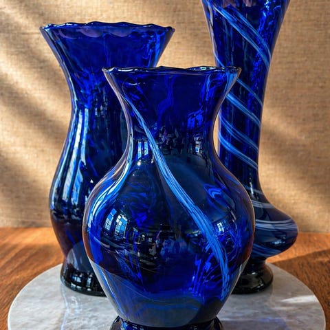 Retro, vintage, blått glass, kunstglass, samleobjekt.