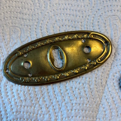 Dekorativt og solid nøkkelskilt i messing med hull til nøkkel