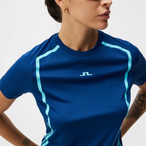 J. LINDEBERG skjørt str. L blå. Pris per sett med T-skjorte 700 kr