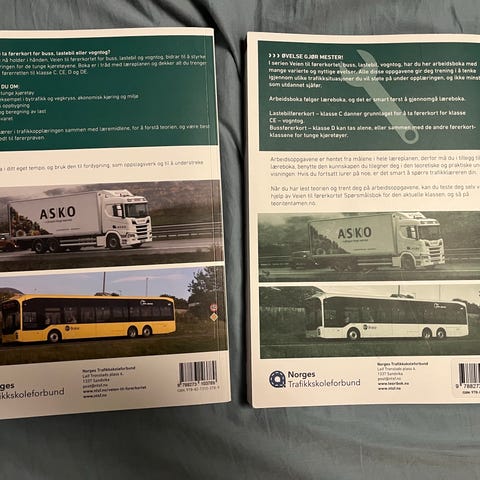 Selger en komplett pakke med eldre, men relevante lærebøker til førerkortopplæring for tyngre kjøretøy. Perfekt for deg som vil ha ekstra øvingsmateriell eller fasit! 300 for alle bøkene 😊