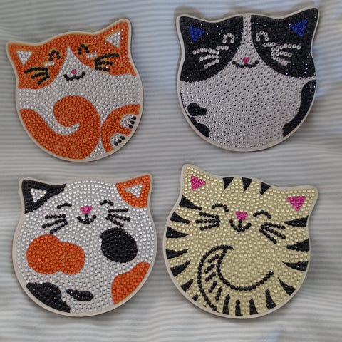 Brikker til å ha under glass og kopper, perlet med Diamond painting.