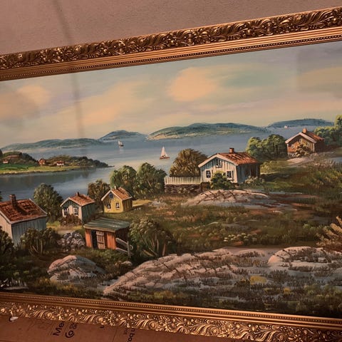 Kan være noe skade på ramme. Helst hentes, eller kan levere/møtes mellom Hvittingfoss og Sandefjord/Drammen etter avtale. Sending på eget ansvar. Kom gjerne med bud. Mål: 111x71cm