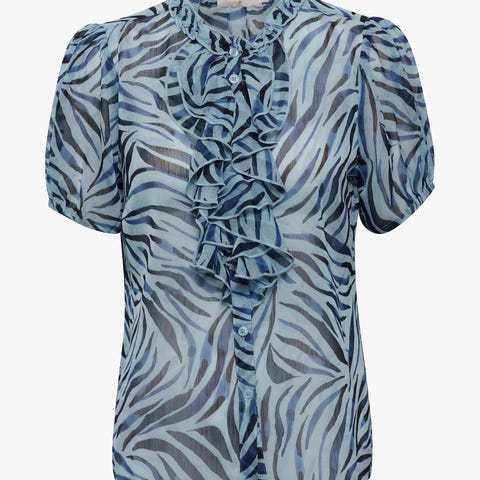 Myk og fresh bluse med rund hals og knappestolpe halvveis ned på bole.