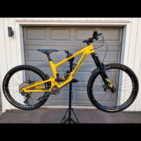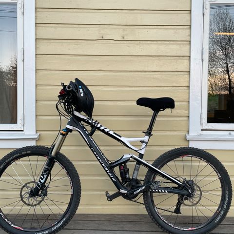 Dette er en Cannondale Jekyll 2 i str L. helcarbon, sykkelen er så å si original utenom noen få oppgraderinger som wrap, styret og stem