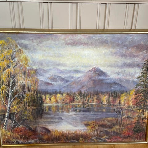 Kan være noe skade på ramme. Helst hentes, eller kan levere/møtes mellom Hvittingfoss og Sandefjord/Drammen etter avtale. Sending på eget ansvar. Kom gjerne med bud. Mål: 60x50cm