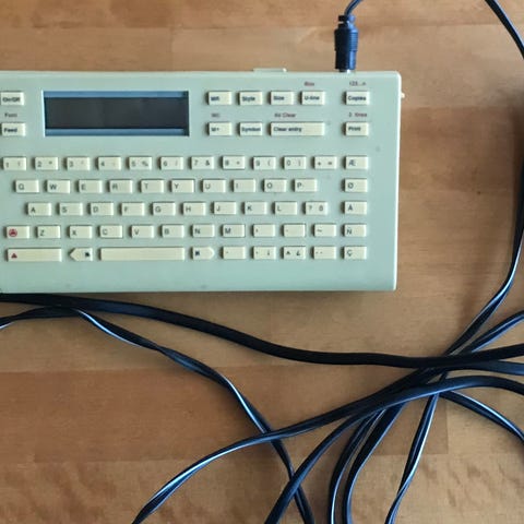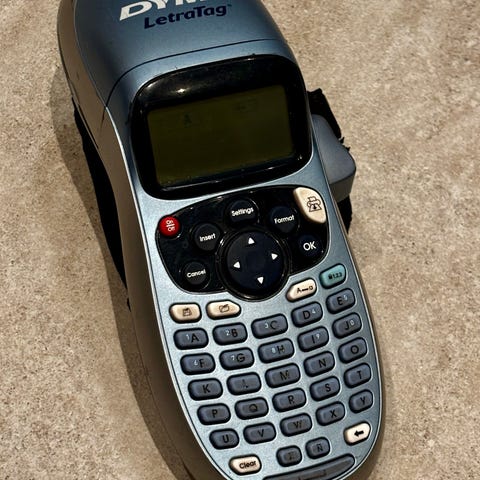 -Dymo maskin – vri og klikk frem bokstavene manuelt.