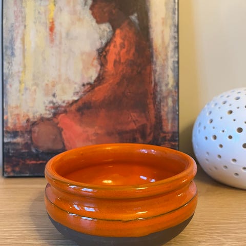 Vintage. Lunds Keramikk. Koselig bolle med rød glasur