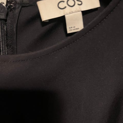 Modellen er størrelse small, 169 cm lang, og holder kjolen sammen bak.