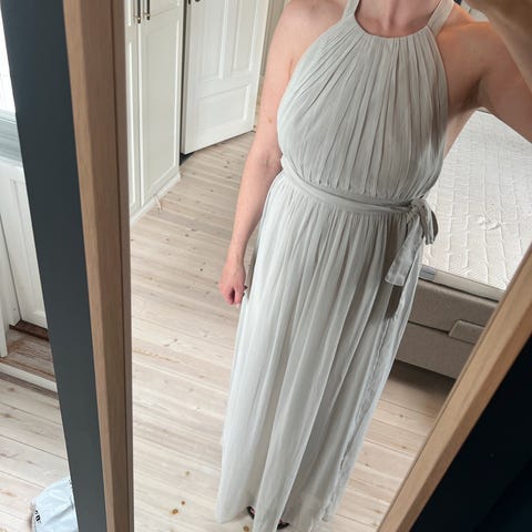 Selger en lang grå kjole fra NLY/EVE. Helt ubrukt, lappen er fortsatt på.