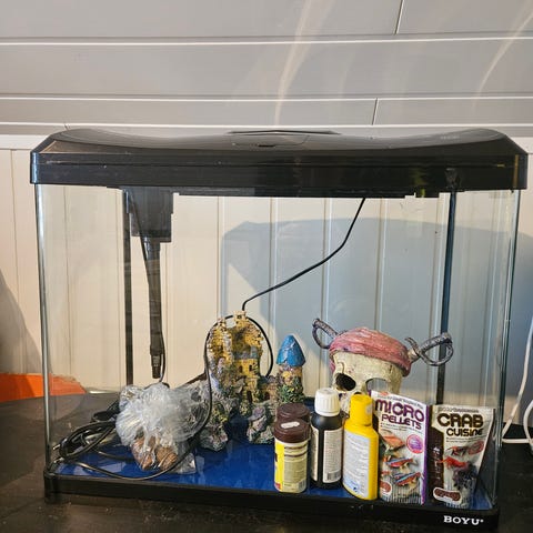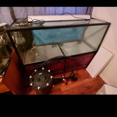 70l Aquarium og underskap med pumpe og div stener + pynt