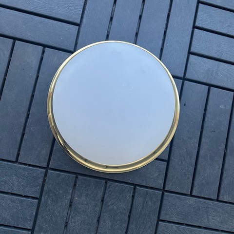 Artig liten maritim lampe, 25 cm høy og 20 cm bred på det bredeste, selges for 100kr. Ledningen og strømtilførselen er helt i orden. Se bildet av lampa tent.