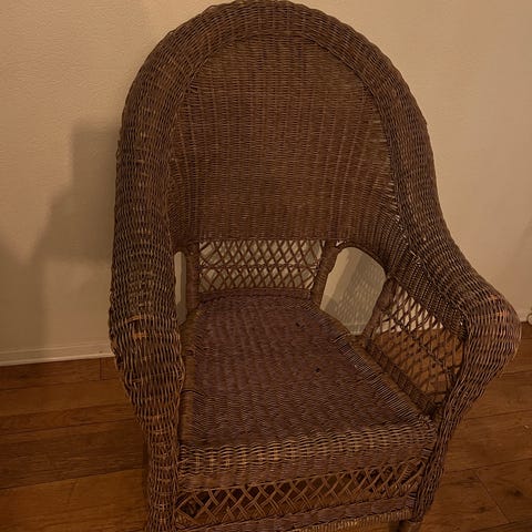 Stor og gammel kurvstol selges for 400 kr pga flytting. Den er malt hvit og trenger litt omsorg, maling og en pute for å bli helt vakker igjen :) Litt vinglete når man flytter på den, men stabil når man sitter i den.