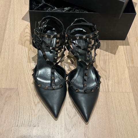 Skoene er kun brukt 1 gang. Sålene under har bruksmerker, men oversiden og hælene er like fine.