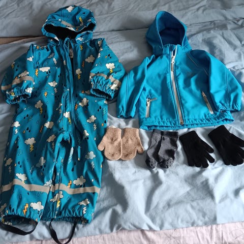Klespakke gutt str.80/86 joggedress, regnsett, genser, body, pyjamas, vest