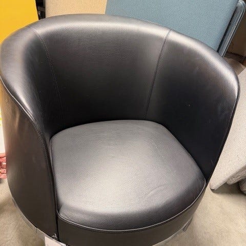 Matt skinn av beste kvalitet. Godt brukt stol, skammel er mindre slitt, begge deler er pleiet med skinnpleiemiddel hvert år. Stolen har slitt innmat.