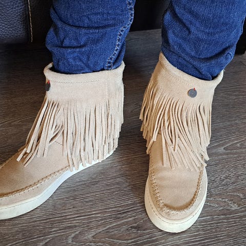 Den ene lissen er blitt sydd, siden den hadde gått i stykker før jeg kjøpte dem. Men dette synes ikke når skoene er på.