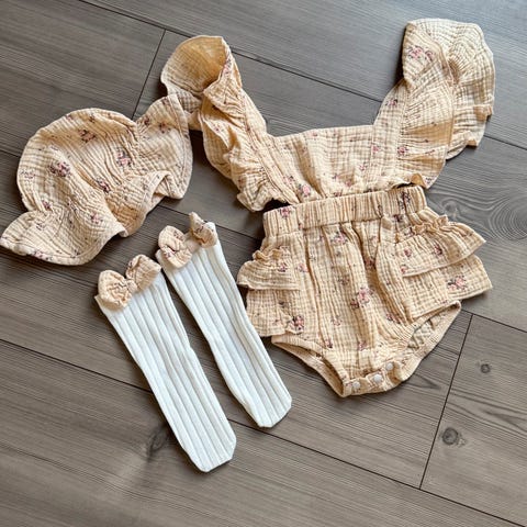 Selger en pakke med tre søte selebukser i størrelse 56 fra Lindex (2 stk) og Newbie (1 stk).