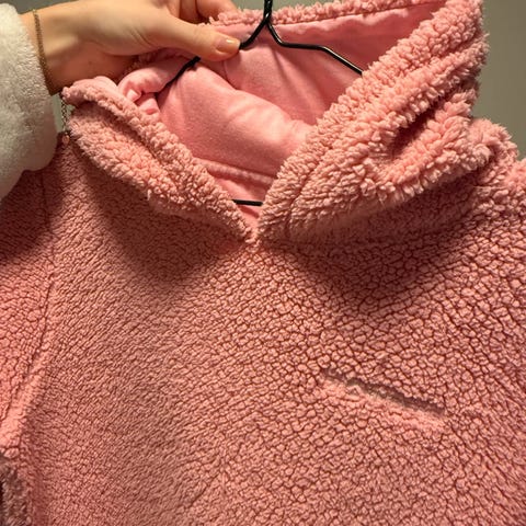 Den står ikke størrelse på lappen, men jeg tror den er M/L. Jeg er S og den er ganske oversized for meg (se på bilde)