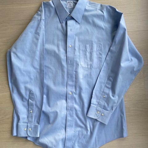 Pent brukt Eton Etastar skjorte i 100% bomull, regular fit. Skjorten er i lyseblå farge med knepping i front og i ermene. Størrelse medium, kragestørrelse cirka 39. I god stand med få bruksmerker. Så vidt man ser noe skjolder på innsiden av kragen.
