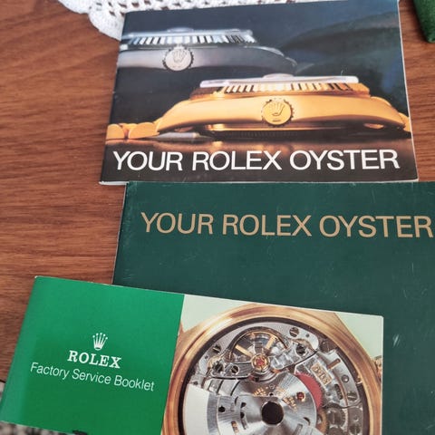 Forskjellige booklets til rolex submariner og datejust selges. Perfekt om man vil komplettere sin vintage rolex. Pris er pr stk.