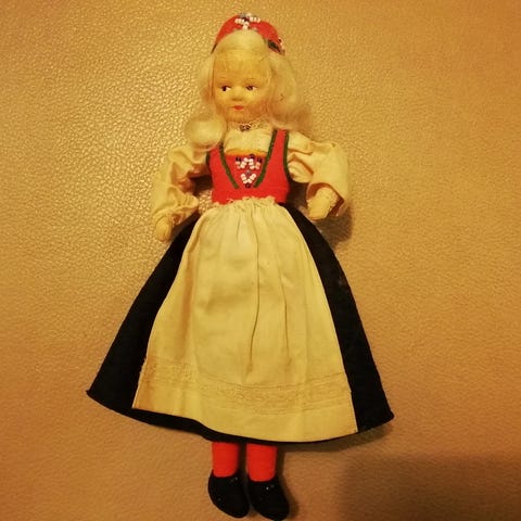 Ca 24 cm lang jentedukke fra Åsmund lærdal selges. Hun har en skade på ene armen og selges derfor til 350 kr. Se bilder for stand ellers og kan sende med tøy