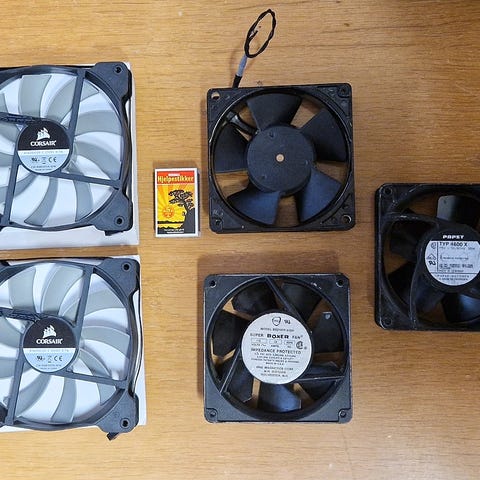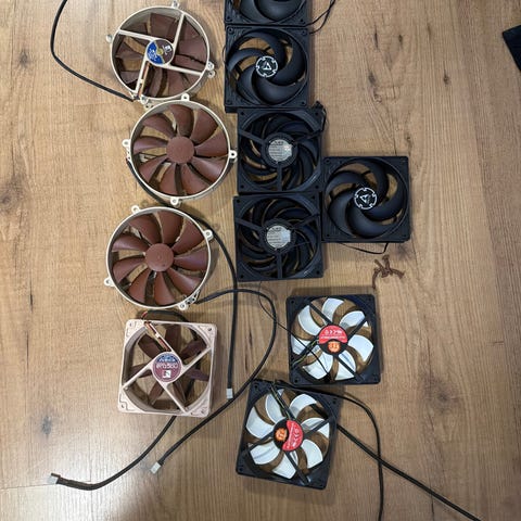 Ulike vifter selges, spør om hva du trenger. Har også en del 140 og 120mm vanlig pc vifter som er ikke avbildet