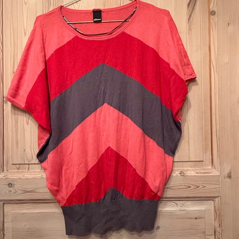 Stilig topp fra Soaked in Luxury, str. L, den er rust/jordfarget. Består av to ulike stoff til forsiden og baksiden. Begge føles behagelige mot kroppen. Fin båthals. På baksiden kan man snøre inn toppen, slik at den sitter ennå nettere på. Passer fint både til vår, sommer og høst. Toppen framstår som veldig fin fortsett. Den har litt smånupper, slike som ofte kommer etter kort bruk, men de ser man bare når man kommer tett innpå, og kan nok også fjernes med nuppefjerner. Selges for 100 kr. Kan hentes i Asker eller Oslo, eller sendes mot porto