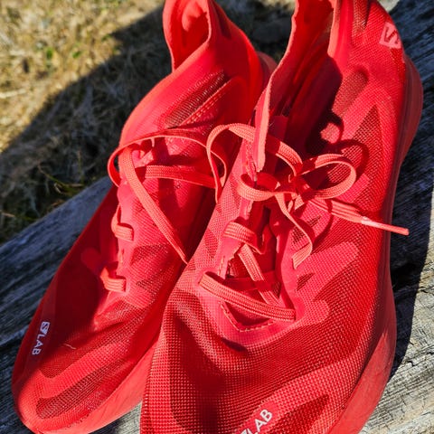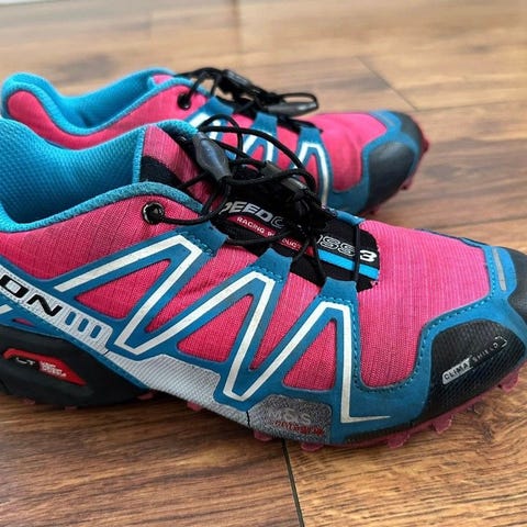 Salomon sko brukt en gang selges. Jeg har plantar fasit og må bruke såler og de får jeg ikke plass til i disse.