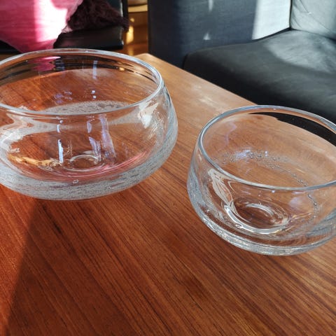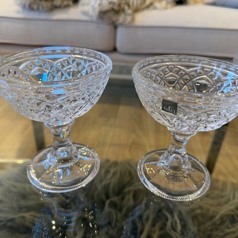3 STK SIA DESSERTGLASS I BLÅTT OG KLART GLASS.