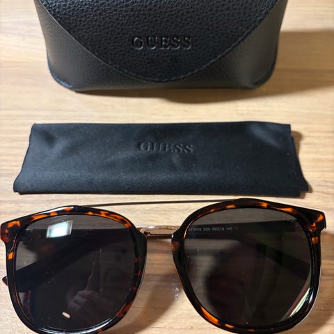 Solbriller fra Guess selges. Må strammes litt på stengene ellers i god stand.